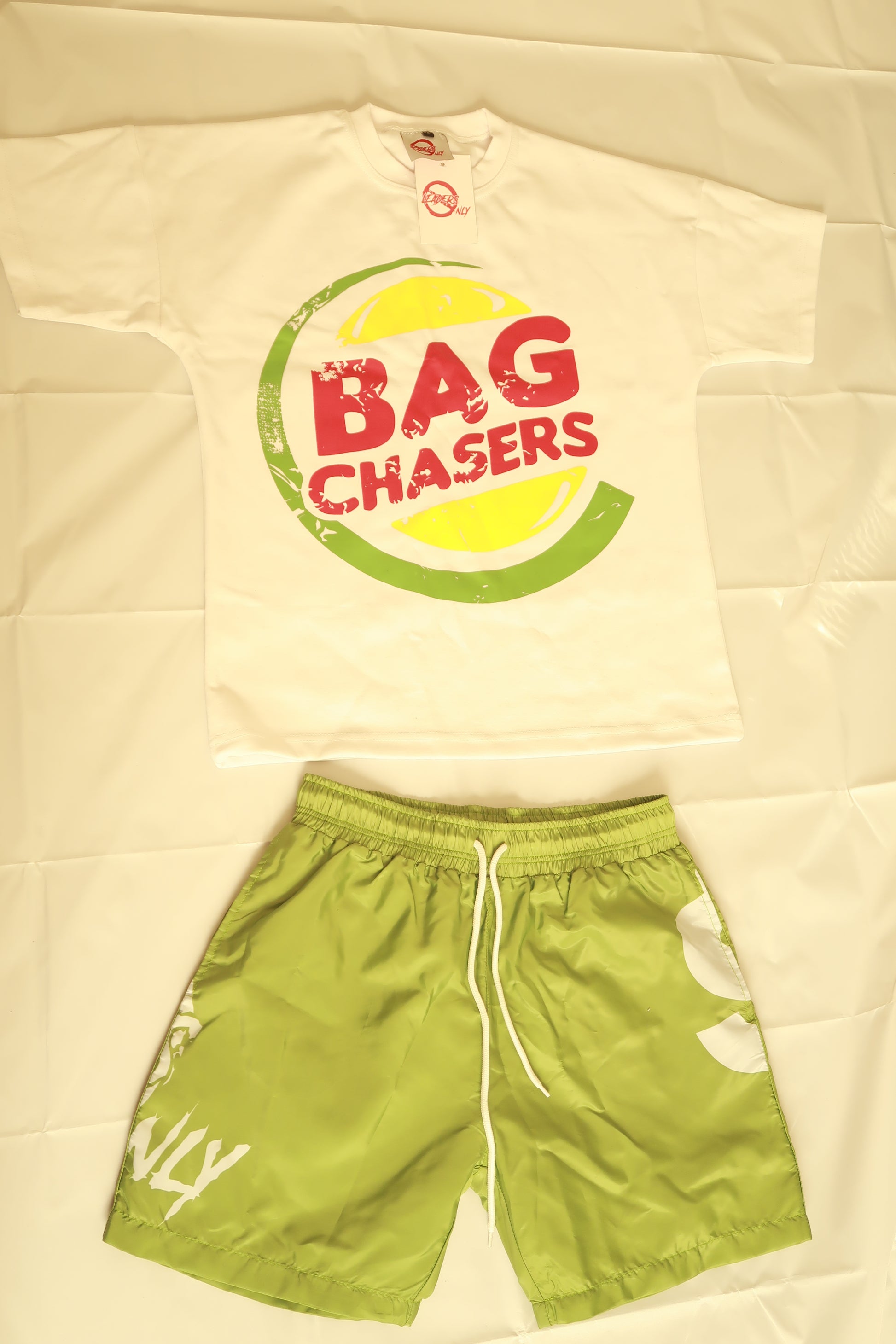 350 GMS OVERSIZED SHORT SLEEVE SHIRT W NYLON SHORTS, DEEP POCKETS, EXTRA LONG DRAWSTRINGS.